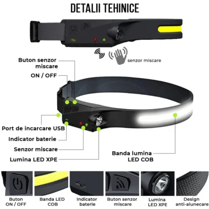Lanterna frontală este prevăzută cu un sistem de prindere reglabil, asigurând fixarea confortabilă pe cap, lăsând mâinile libere. Este ideală