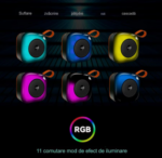 8. Control intuitiv, cu butoane accesibile pentru gestionarea volumului, schimbarea melodiei și activarea efectelor LED.