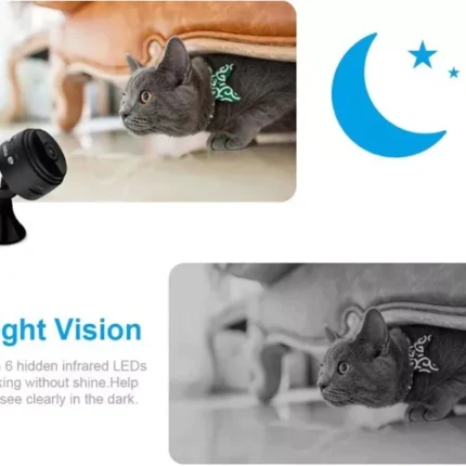 Camera permite vizualizarea în timp real a evenimentelor din interior, având un microfon integrat pentru sunet și capacitate de noapte cu LED-uri IR. Dimensiunile ambalajului sunt 16.5 x 15 x 12.5 cm.