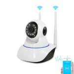 – Caracteristici speciale: Monitorizare cu sunet, slot microSD (max 32GB), înregistrare video de până la 24 de ore, alarmă, notificări pe mobil, 11 LED-uri infraroșii pentru viziune nocturnă până la 10 metri, senzor PIR/miscare, rotație Pan & Tilt 360 grade, microfon și difuzor de 1.5 W