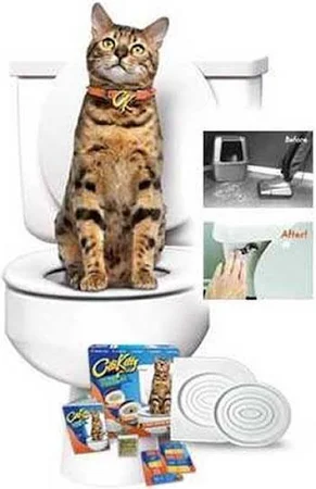 1. Înlocuiește litiera cu kit-ul Citi Kitty, așezându-l pe marginea toaletei și acoperindu-l cu capacul.