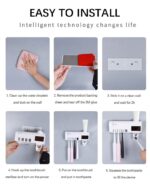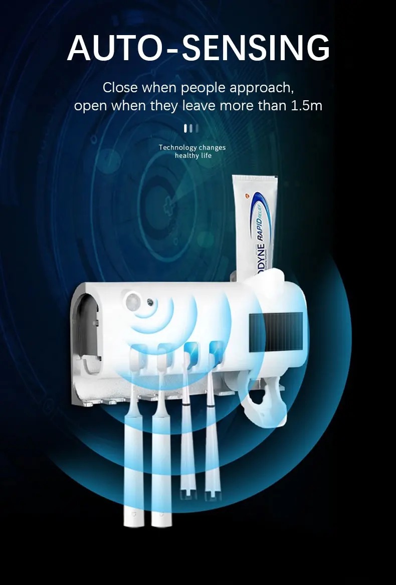 Dozator solar de pastă de dinți cu sterilizare UV pentru periuțe, perfect pentru baie. Acest suport multifuncțional oferă: