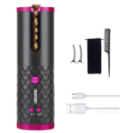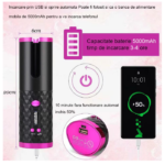Ondulator automat wireless Tiessa®, 6 setari de temperatura si timp afisaj LCD, 150 – 200 °C, incarcare USB, roz/gri
