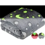 Pătură ideală pentru copilul tău, care aduce liniște și bucurie la culcare! Fabricată din materiale moi și durabile, cu stele și luni fosforescente ce strălucesc în întuneric, oferind un sentiment de siguranță. Pătura se „încarcă” la lumina zilei, astfel încât noaptea emite o lumină plăcută, alungând teama de întuneric.