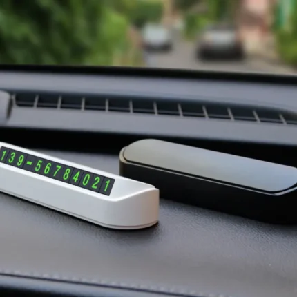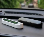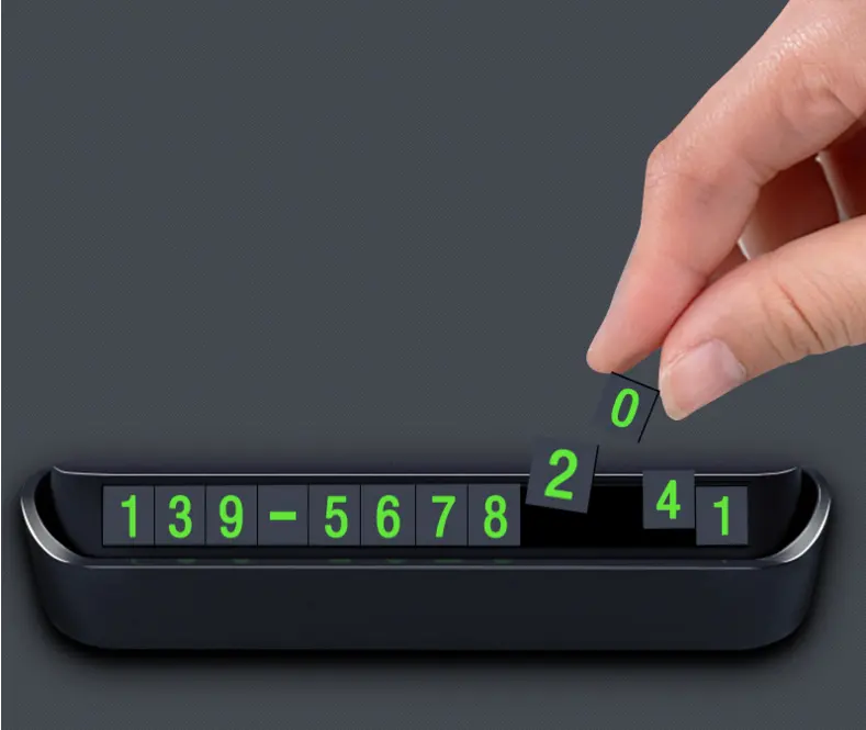 Plăcuța pentru afișarea numărului de telefon la parcare este ideală pentru parbriz, fiind utilă atunci când ocupați un loc de parcare, blocați o cale de acces sau o altă mașină. Este recomandat să aveți un număr de telefon vizibil pentru a facilita contactul în astfel de situații. Această plăcuță personalizabilă este elegantă și ușor de folosit. Se personalizează simplu prin îndepărtarea segmentelor pentru a forma cifrele numărului de telefon și se fixează cu o bandă adezivă dublă. Este rezistentă la soare, nu se decolorează și are următoarele