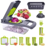 Răzătoare multifuncțională 9-în-1 pentru legume și fructe, cu lame din inox și mâner de protecție