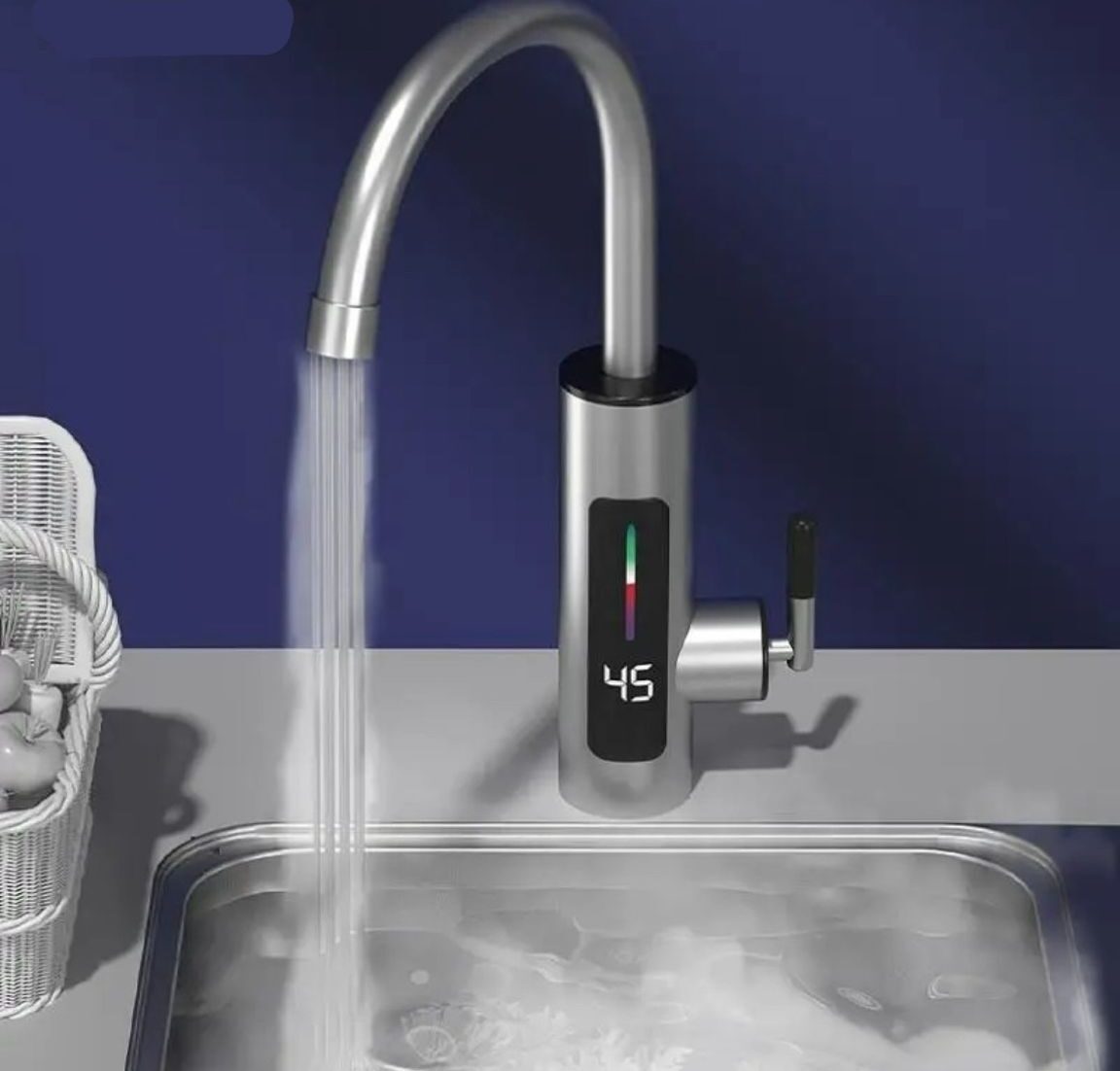În interior, robinetul electric are un element de încălzire care aduce apa la o temperatură de până la 60°C în doar câteva secunde. Temperatura apei poate fi reglată ușor, de la călduță până la fierbinte.