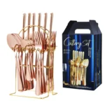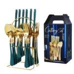 Be the first to review “Set de tacâmuri din oțel inoxidabil, 24 de piese, inclusiv suport” Anulează răspunsul