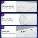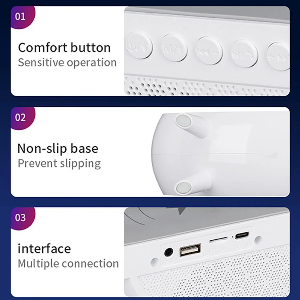 Lampă RGB cu încărcător wireless rapid de 15W și acumulator reîncărcabil de 1500 mAh. Un dispozitiv 3-în-1 ideal pentru relaxare, cu funcții de încărcare rapidă, difuzor Bluetooth și iluminare ambientală.