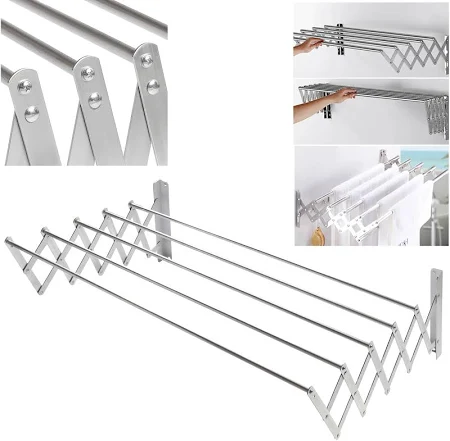 Acest uscător retractabil din aluminiu, montat pe perete și având o lungime de 70 cm, este ideal pentru economisirea spațiului, oferind o soluție practică pentru uscarea hainelor. Fabricat din aluminiu durabil și rezistent la coroziune, este ușor de instalat și vine cu toate accesoriile de montaj necesare. Datorită designului său retractabil, poate fi extins doar atunci când este nevoie și retras pentru a elibera spațiul atunci când nu este utilizat.